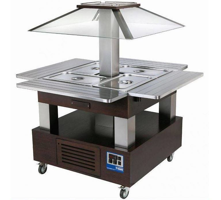 Ilot buffet chauffant, bain marie, 4x GN1/1-150 (Bois Wengé)