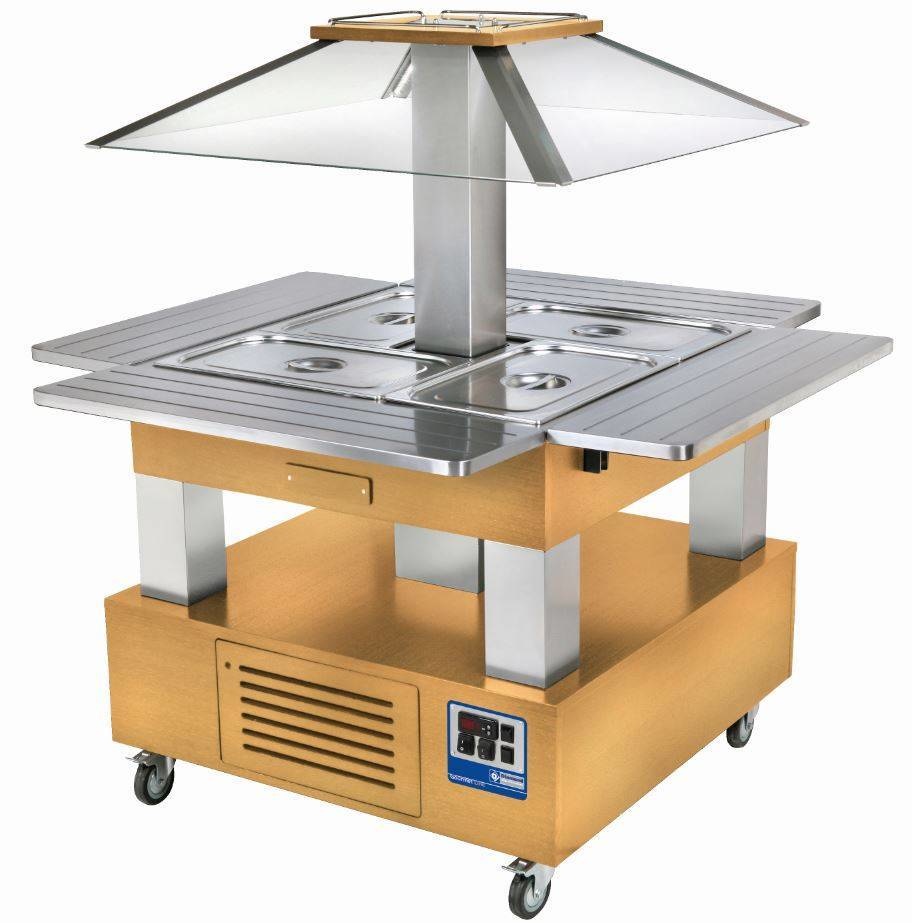 Ilot buffet - Salad bar, Réfrigéré, 4x GN1/1-150 (Bois Chêne clair)