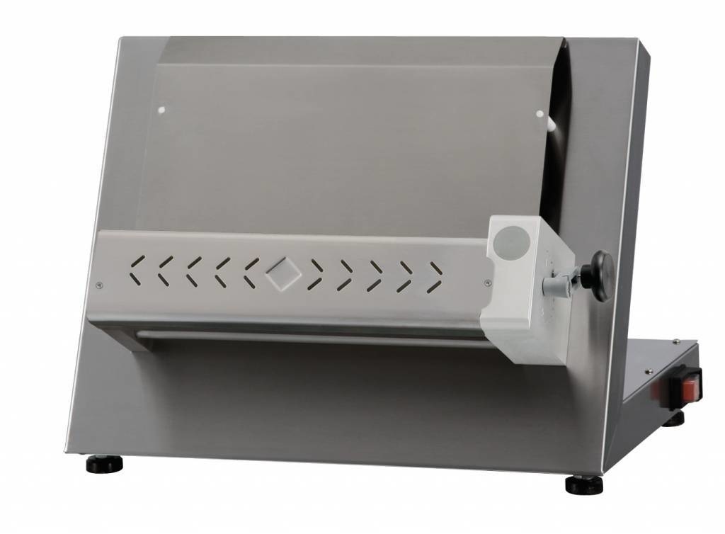Traitement de 210 à 600 gr. et réglable de 260 à 400 mm.Laminoir compact et économique.