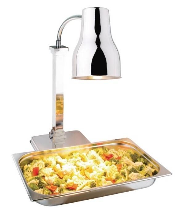 La lampe chauffante sur pied Olympia vous assure le maintien à la température de service parfaite des viandes rôties tout en gardant la texture des sauces crémeuses. Cette lampe chauffante professionnelle sur pied très stable est dotée d'une construction en acier inoxydable poli et d'une tête réglable pratique permettant de concentrer température et lumière sur la viande. Parfait pour tout front de l'environnement de la maison.