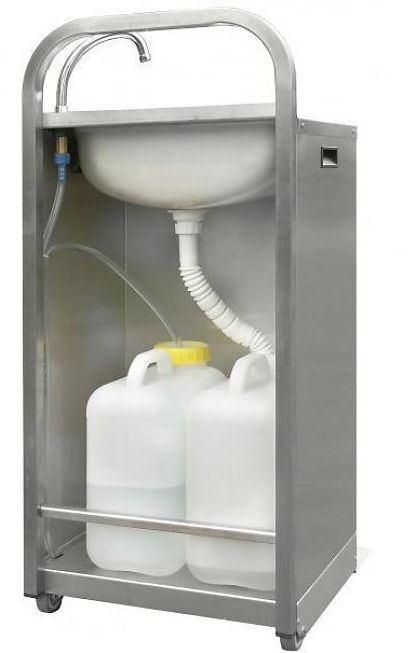 Lavabo Portable Inox | Avec Commande aux Pieds | Inclus 2 Jerrycans de 13 Litres