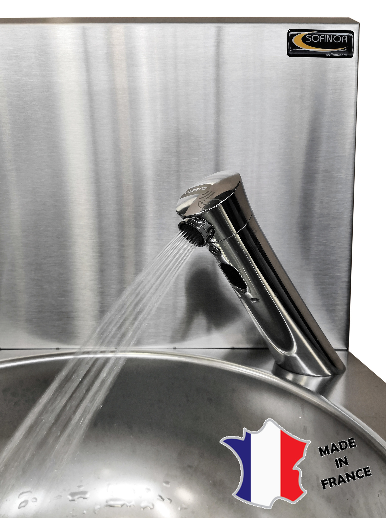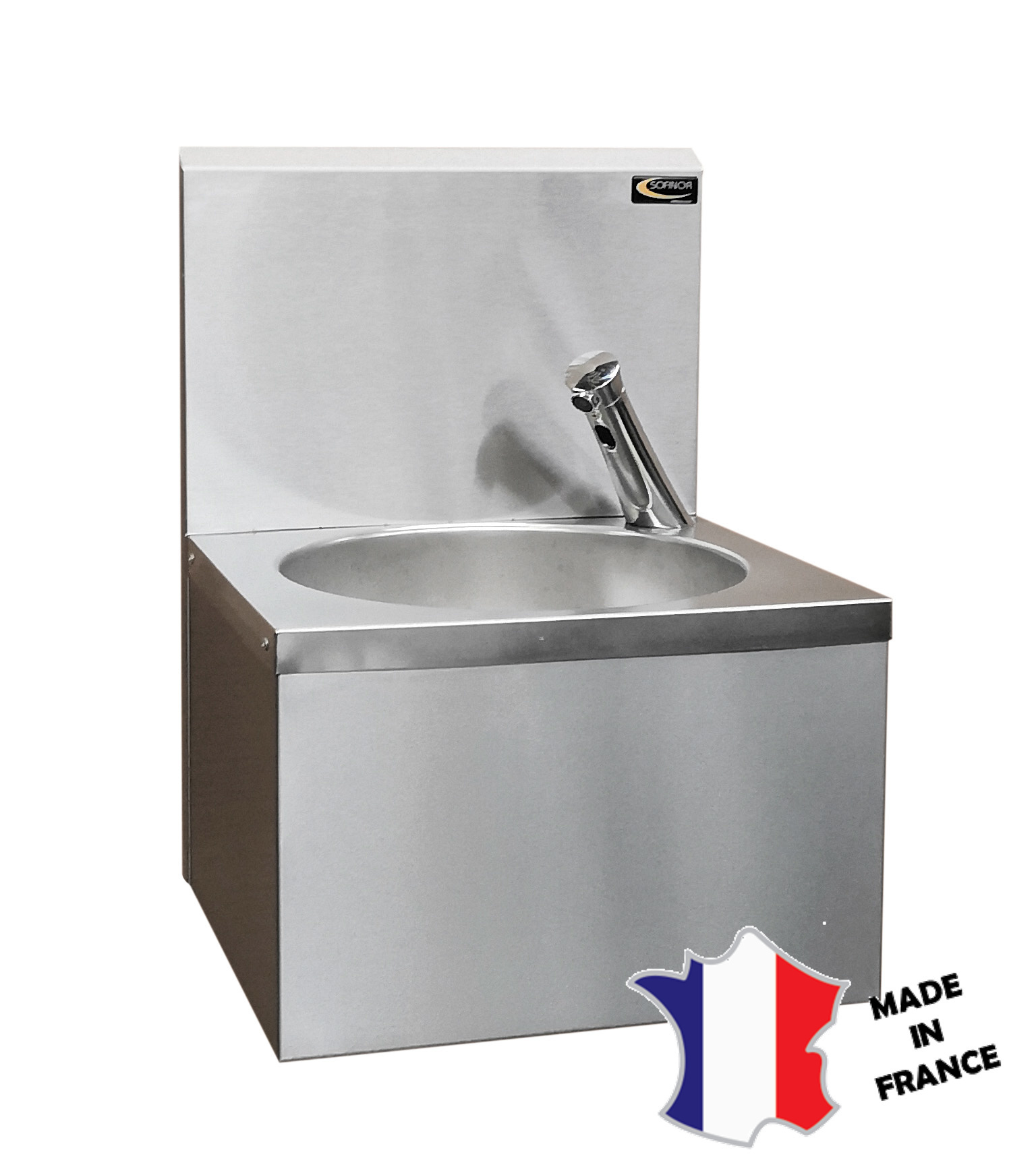 Lave-mains tout inox AISI 304L à commande électronique, avec dosseret.