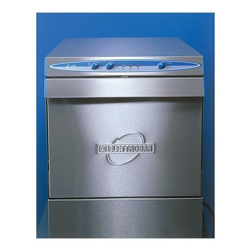 lave-vaisselles de Elettrobar aux inox 18/10, les résistances de lavage et de rinçage, fonctionnant séparément, sont réglées par thermostat, avec micro-interrupteur pour la porte, les bras rotatifs sont amovibles en vue d'un nettoyage aisé, connexion d'eau Ø3/4", avec bouton marche-arrêt et un interrupteur marche-arrêt, avec les bras rotatifs nouveaux brevet déposé, doseur de produit de rinçage incorporé, avec 2 cassier tasse et 2 godets pour couverts, durée cycle de lavage 150 secondes, capacité de la chaudière 2,6L, 2,6kW, capacité cuve 9L, 0,6kW, dimension casier 35x35cm, hauteur de remplissage max. 25cm