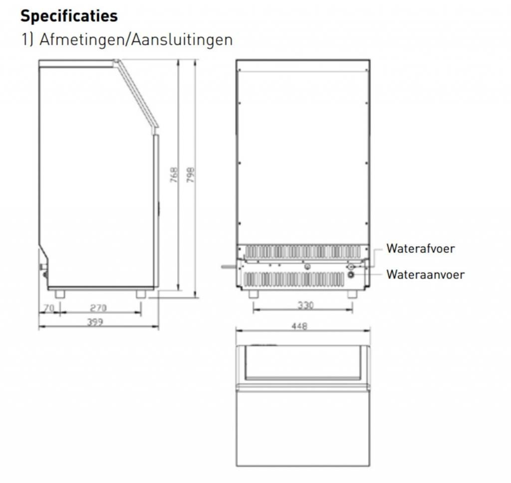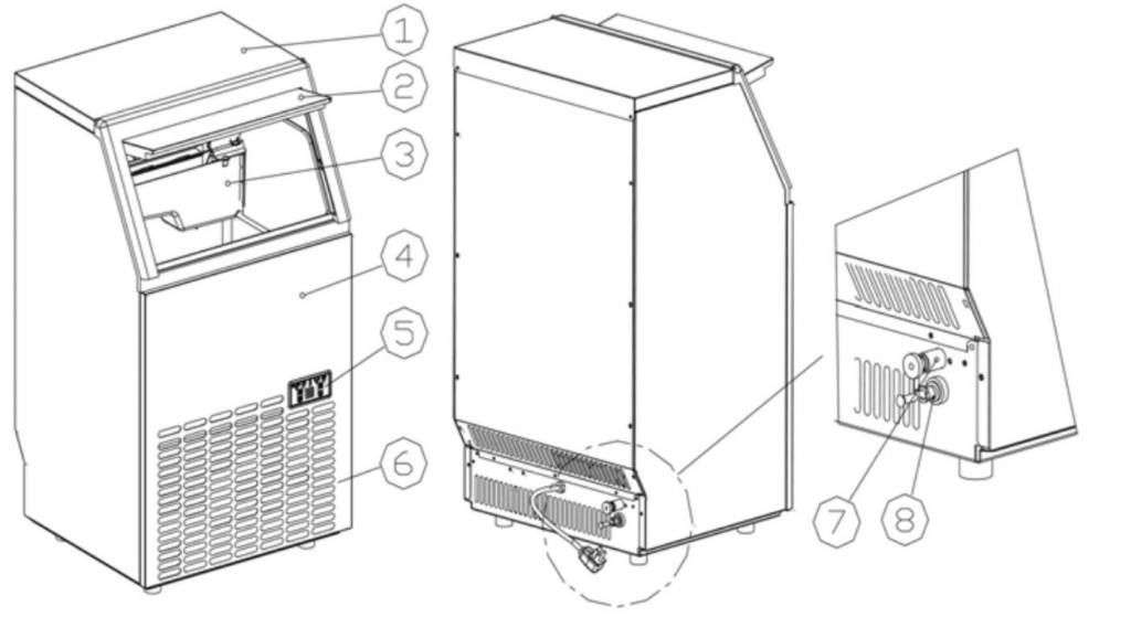 - Peut produire jusqu'à 35 kg de glace par jour avec un stockage de réserve de 15 kg.