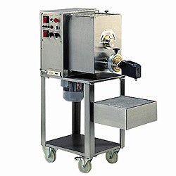 Entièrement réalisé en acier inoxydable.De base, elle permet le pétrissage de la pâte (capacité de cuve: 6 kg de farine), ainsi que la production en automatique de pâtes "de blé dur" (production 15/18 kg/h).