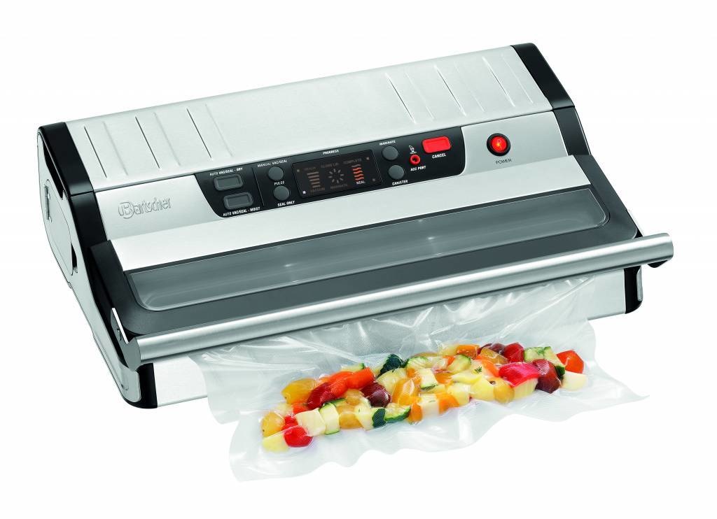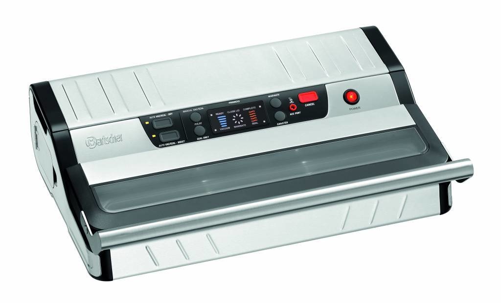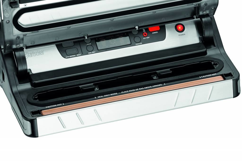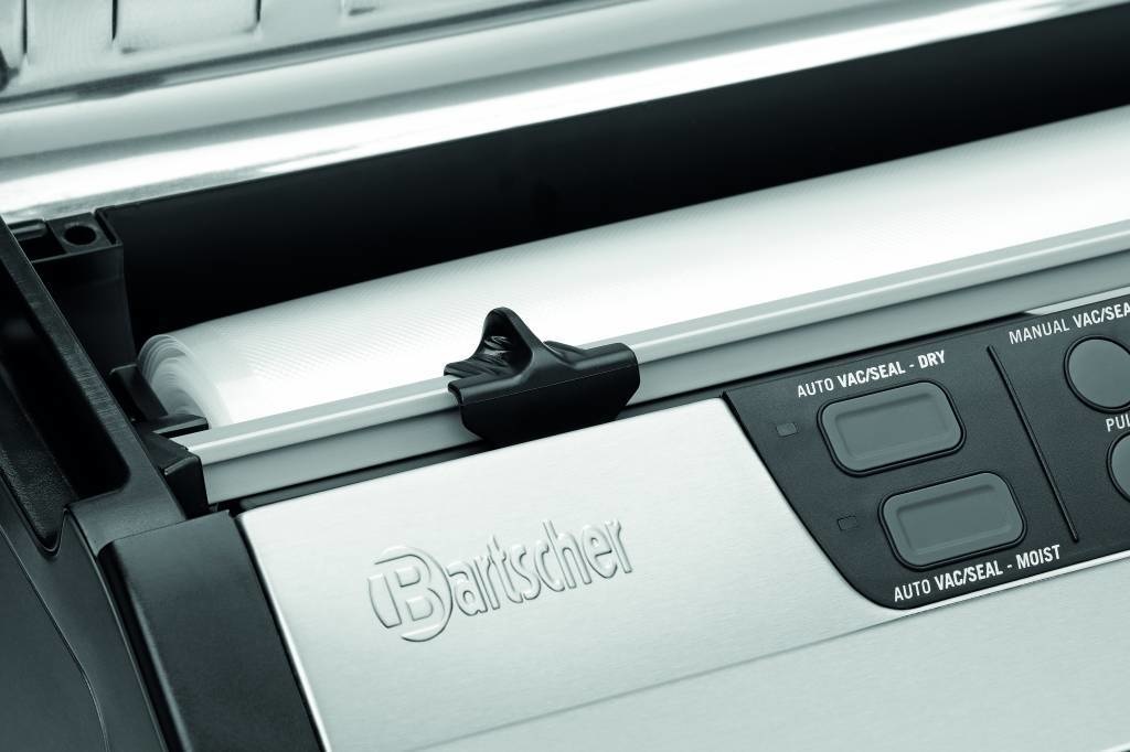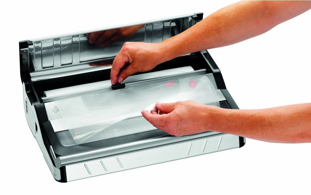 Prêt en permanence : l'appareil de mise sous vide avec porte-rouleau et lame intégrée est prêt à l'emploi immédiatement. L'appareil convient particulièrement pour mettre sous vide, faire mariner et sceller de petites quantités.