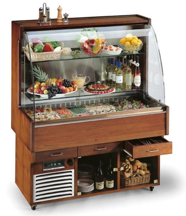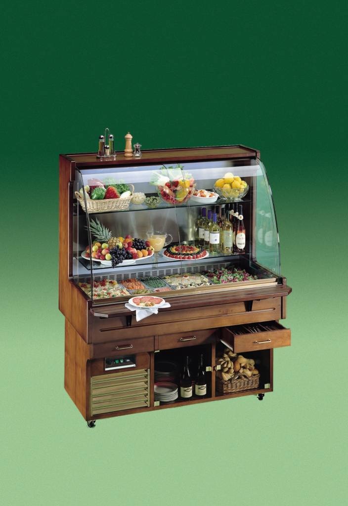Meuble Buffet | Vitrine Réfrigérée | Mobile | 4x GN 1/1 | 150mm de Profondeur | Bois Massif | 230V/600W | 1430x750 / 1080x(h)1740mm