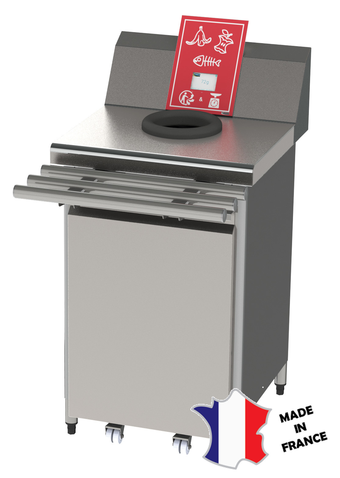 - Meuble de débarrassage avec pesée intégrée.
