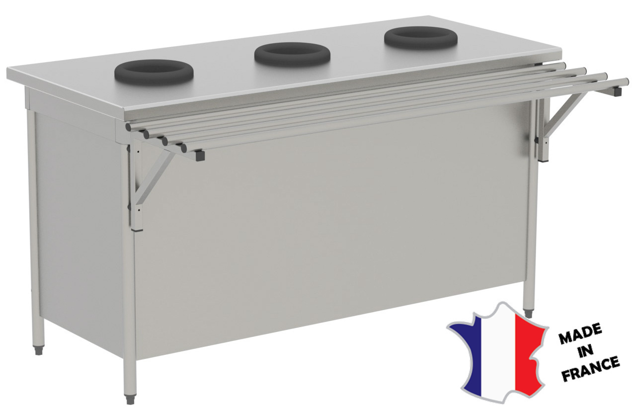 Meuble de pré-tri avec 3 trous vide-déchets | 1600(l)x700x900mm