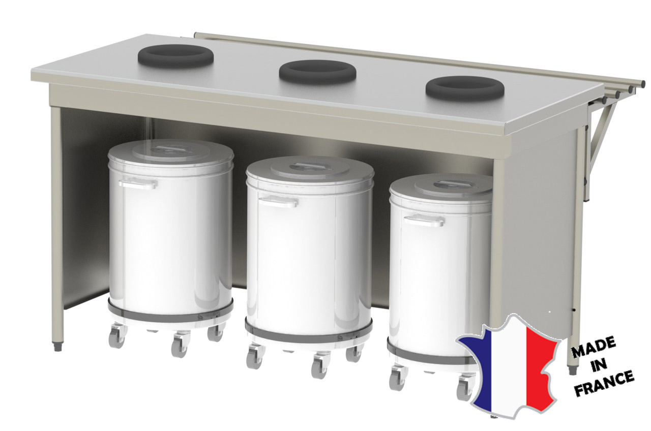 Meuble de pré-tri avec 3 trous vide-déchets | 1600(l)x700x900mm