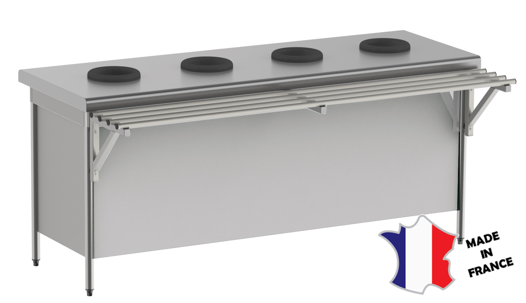Meuble de pré-tri avec 4 trous vide-déchets | 2000(l)x700x900mm