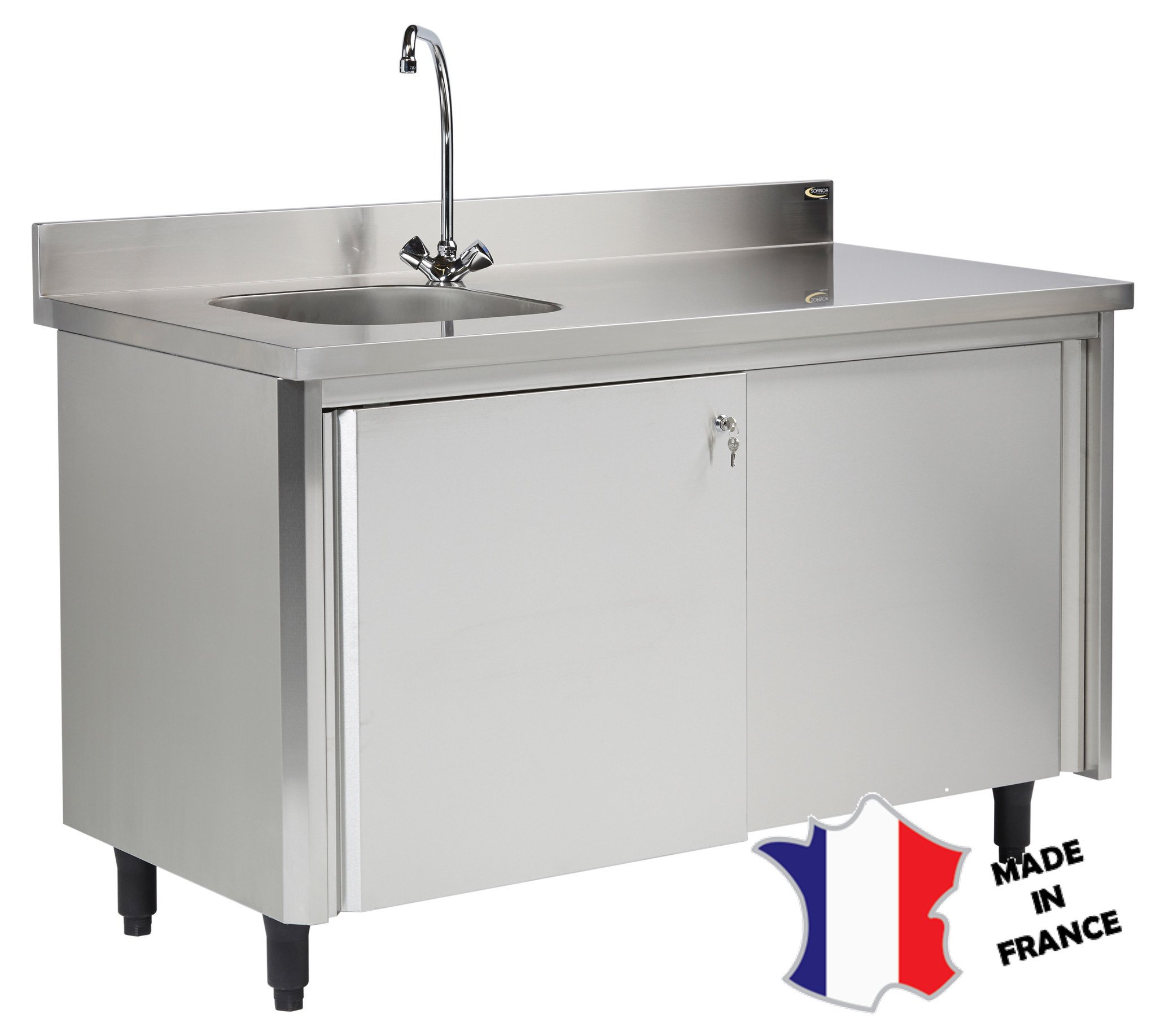 MEUBLE DU CHEF BORDS DROITS, DIM : 1400x700 EP 40 MM, 1 CUVE 400x400x250 A DROITE, AVEC SERRURE.Inox AISI 304L.