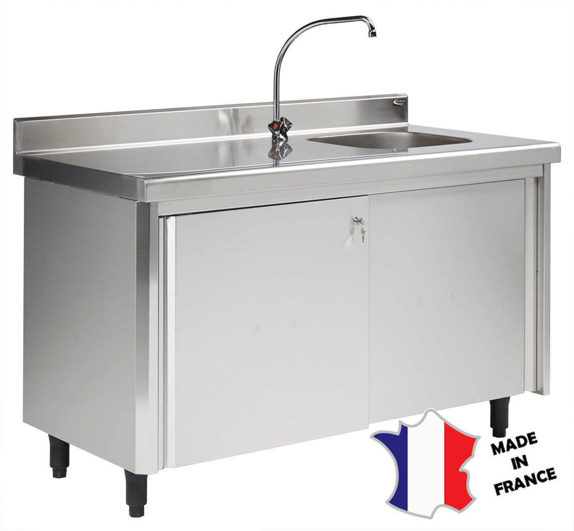 meuble du chef bords rayonnés,dim : 1200x700 ep 60 mm, 1 cuve 400x400x250 a droite, avec serrure.