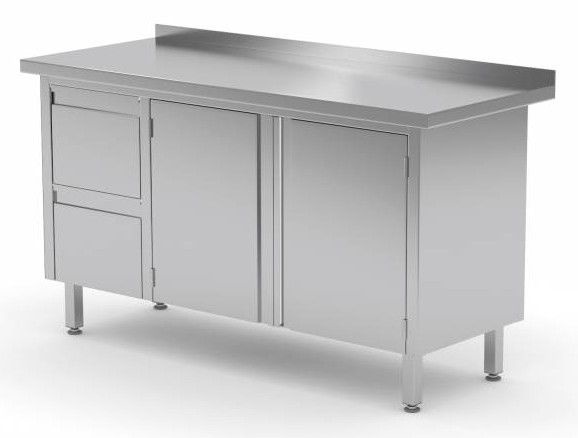 Meuble INOX | 2 Tiroirs (Gauche) | 2 Portes Battantes | Rebord | 1100(l)x700(p)mm | Choix de 8 Largeurs
