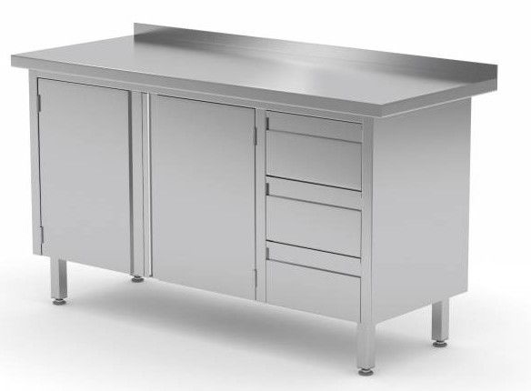 Meuble INOX | 3 Tiroirs (Droite) | 2 Portes Battantes | Rebord | 1100(l)x600(p)mm | Choix de 8 Largeurs