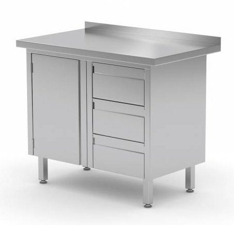 Meuble INOX | 3 Tiroirs (Droite) | Porte Battante | Rebord | 830(l)x600(p)mm | Choix de 3 Largeurs