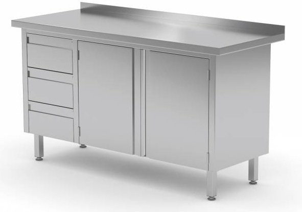Meuble INOX | 3 Tiroirs (Gauche) | 2 Portes Battantes | Rebord | 1100(l)x700(p)mm | Choix de 9 Largeurs