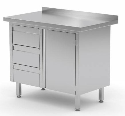 Meuble INOX | 3 Tiroirs (Gauche) | Porte Battante | Rebord | 830(l)x600(p)mm | Choix de 3 Largeurs