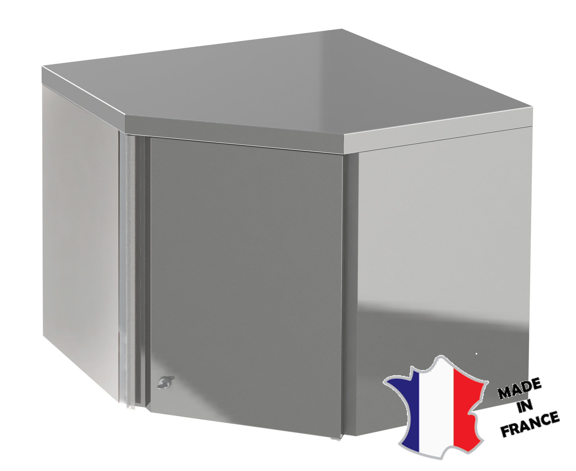 meuble mural d'angle dim 700x700x407x600 - toit plat -inox aisi 304l porte et cotés doublés.