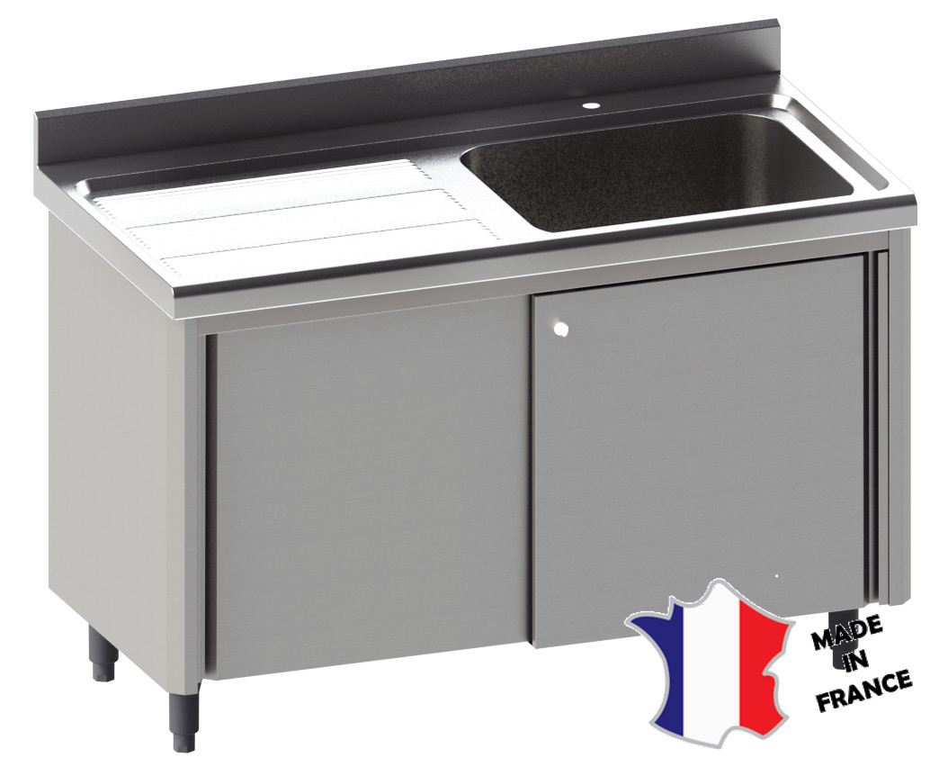 Meuble plonge rayonne | Inox | 1 bac égouttoir à droite | sur verins | 1200(l)x700x900mm