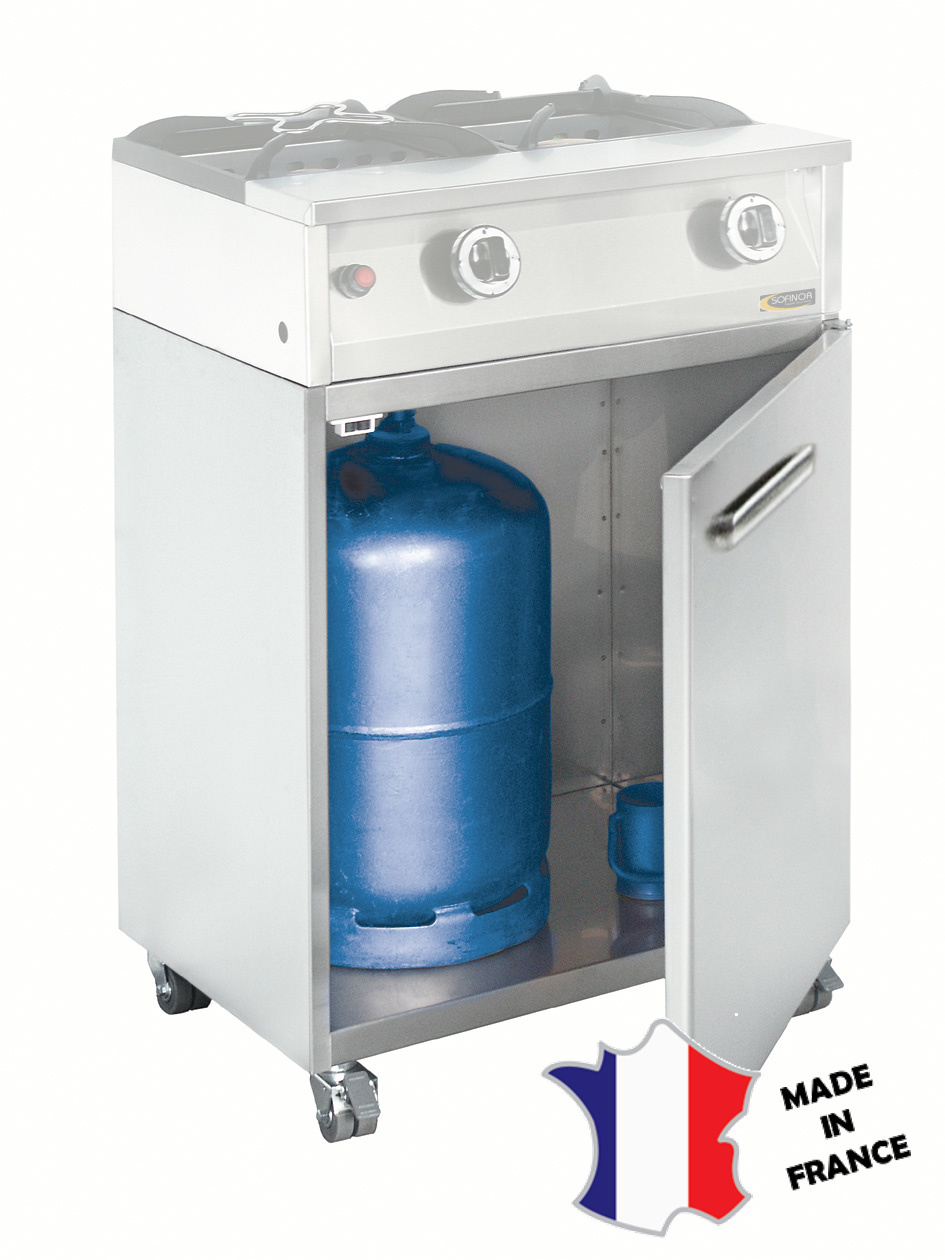 Meuble pour réchauds gaz 2 feux| Inox | sur roulettes | avec porte | 600(l)x490x732mm