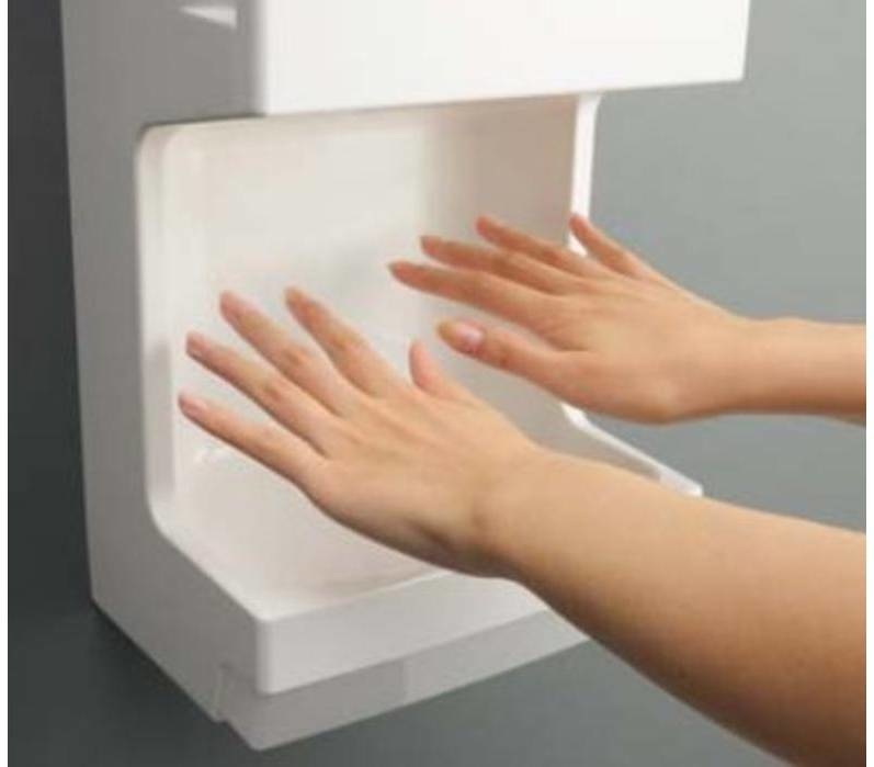 Le Jet Towel Mini est immédiatement prêt à l'emploi grâce à son moteur à démarrage très rapide. Il sèche les mains de manière fiable et totalement sans contact. Ce faisant, l'excès d'eau s'écoule dans le bac collecteur intégré. Toutes les pièces qui entrent en contact avec l'eau sont pourvues d'une couche antibactérienne. L'ensemble du boîtier peut être nettoyé avec des désinfectants à base d'alcool.