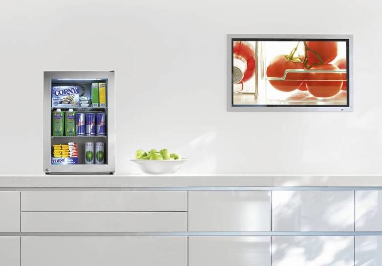 Le réfrigérateur minibar Liebherr FKv 503 est tout en acier inoxydable. De dimension compacte, mais en finition de luxe avec, entre autres, réfrigération dynamique, porte avec verre isolant sans poignée, éclairage de plafond LED commutable séparément et verrou. Le modèle FKv 503 peut aussi être suspendu.