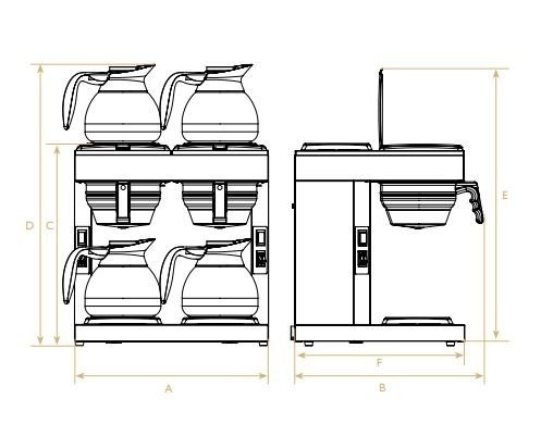 Percolateur à café Double | 1,8 Litres | Manuel | 2 groupe et 4 plaques chauffantes | 4,8kW