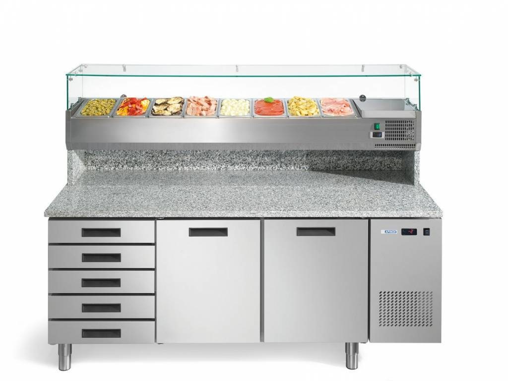 - Prise d'établi pour réfrigérateur à pizza prête à l'emploi, avec plan de travail en granite et refroidisseur à casserole et 5 tiroirs non refroidis