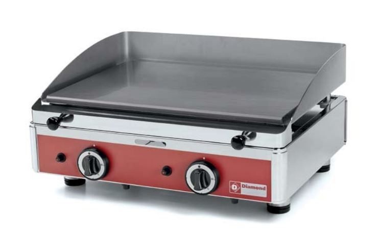 Plaque de cuisson lisse, en acier (15 mm), à haute conductibilité, munie d'un rebord périphérique soudé, garantissant une parfaite étanchéité et propreté.
