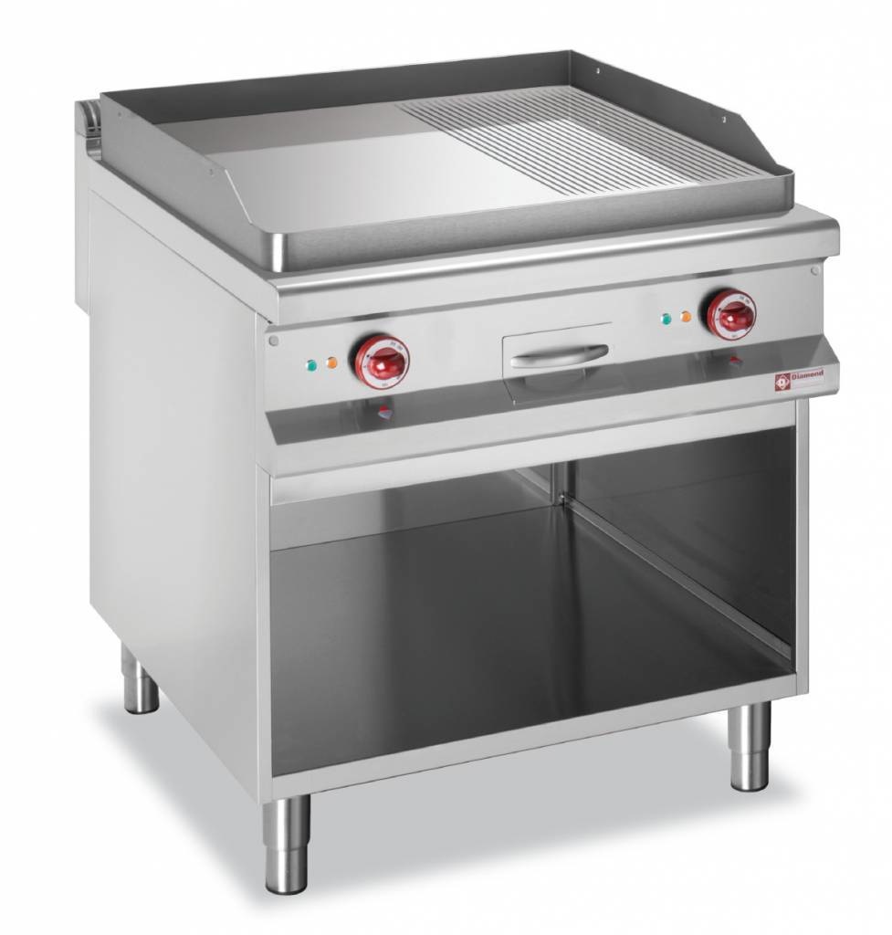 Plaque de cuisson | électrique | Chromé | 2/3 Lisse, 1/3 rainurée | 400V | 12kW | armoire ouverte | 800x900x(h)850/920mm