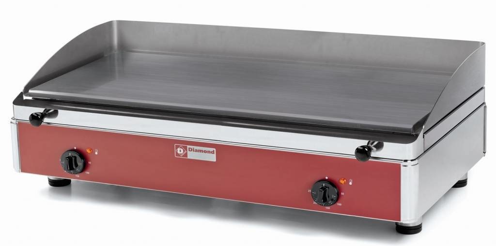 . Plaque de cuisson lisse, en acier (15 mm), à haute conductibilité, munie d'un rebord périphérique soudé, garantissant une parfaite étanchéité et propreté.