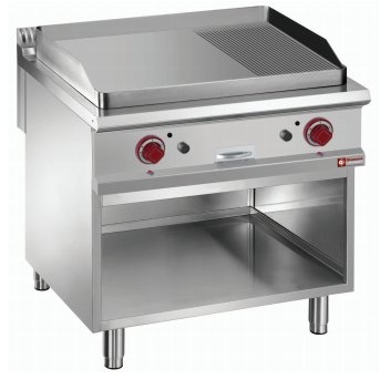 Plaque de Cuisson | Gaz | 2/3 Lisse, 1/3 Rainurée | sur Armoire Ouverte | Module 1/1 | 800x900x850/920(h)mm