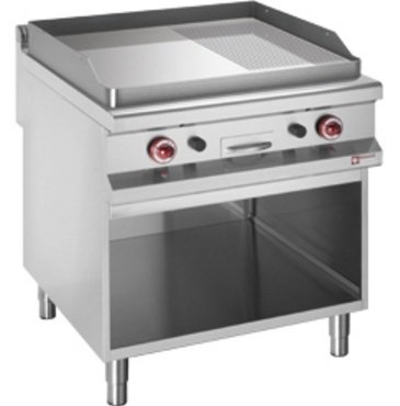 Plaque de cuisson | Gaz | Chromé | 2/3 Lisse, 1/ 3 rainurée | armoire ouverte | 800x900x(h)850/920mm