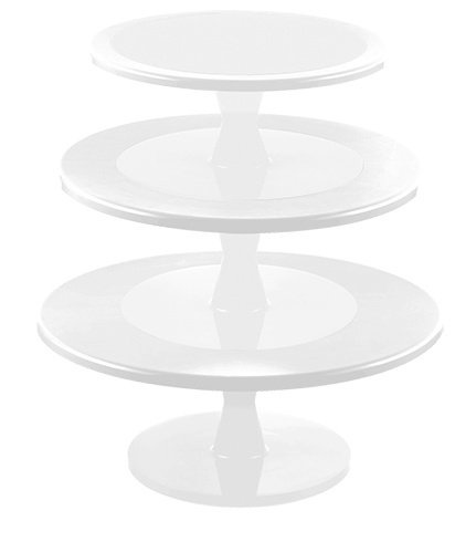 Plateau à tarte Plastique Blanc | avec Pied Tournant| 3 étages |Ø 240/300/350x(H)440mm