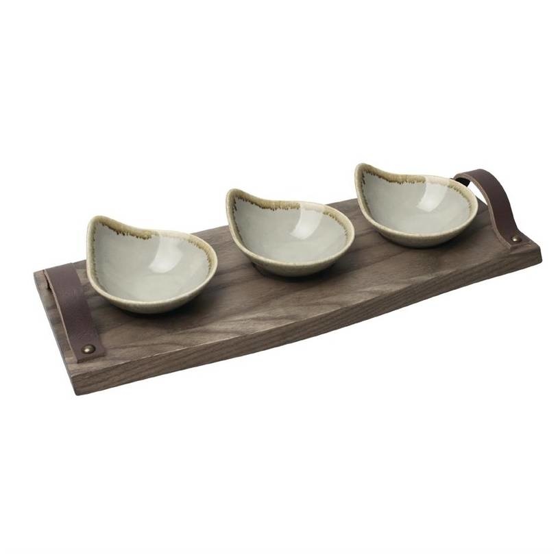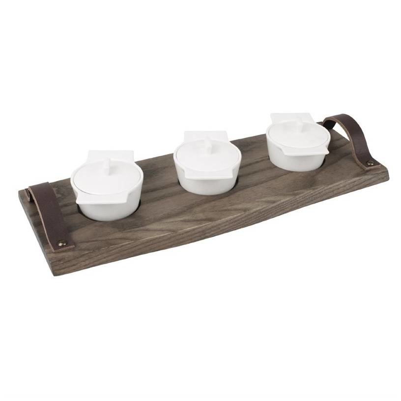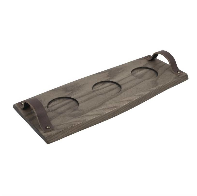 Plateau de Service | en Hêtre | Poignées en Cuir | 370x150x12(h)mm