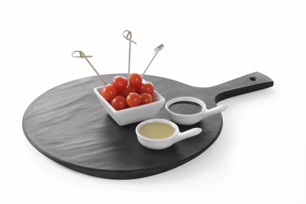 Plateau Rond avec Poignée | Melamine | Imitation Ardoise | 424x300x15(h)mm