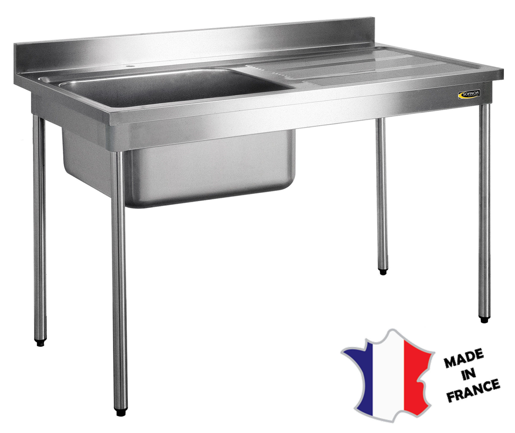 - 1 bac de 500X400Xht300 et 1 égouttoir cannelé à droite.