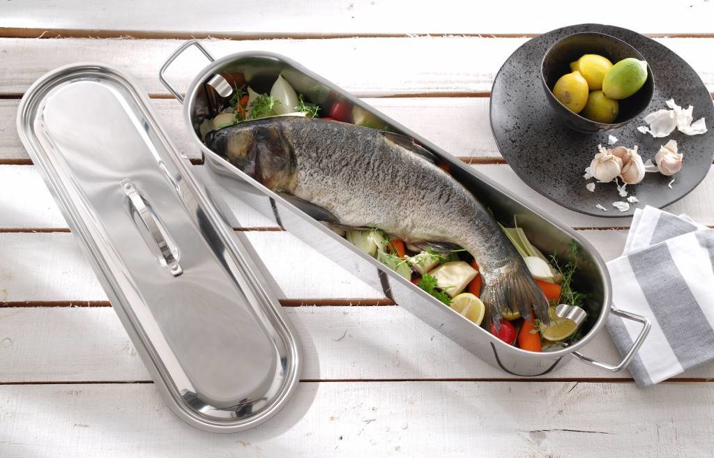 Pocheuse à Poisson | Inox | avec Plateau Surélevé | 705x185x(H)160mm