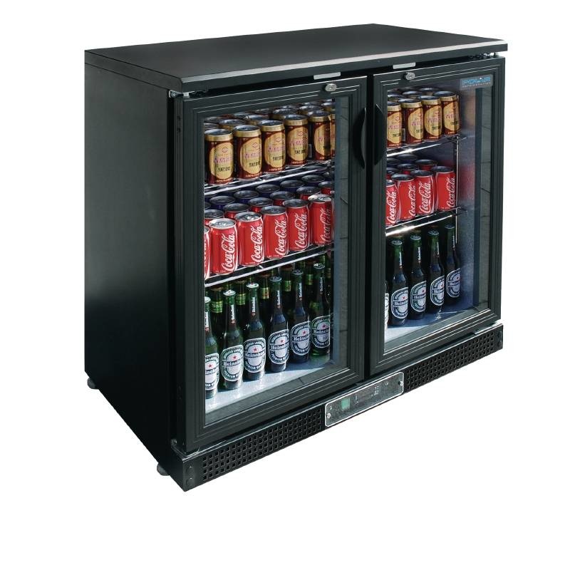 Gardez vos boissons fraîches et accessibles dans cet arrière-bar Polar. Extérieur en epoxy polyester noir, deux portes double vitrage verrouillables pivotantes.