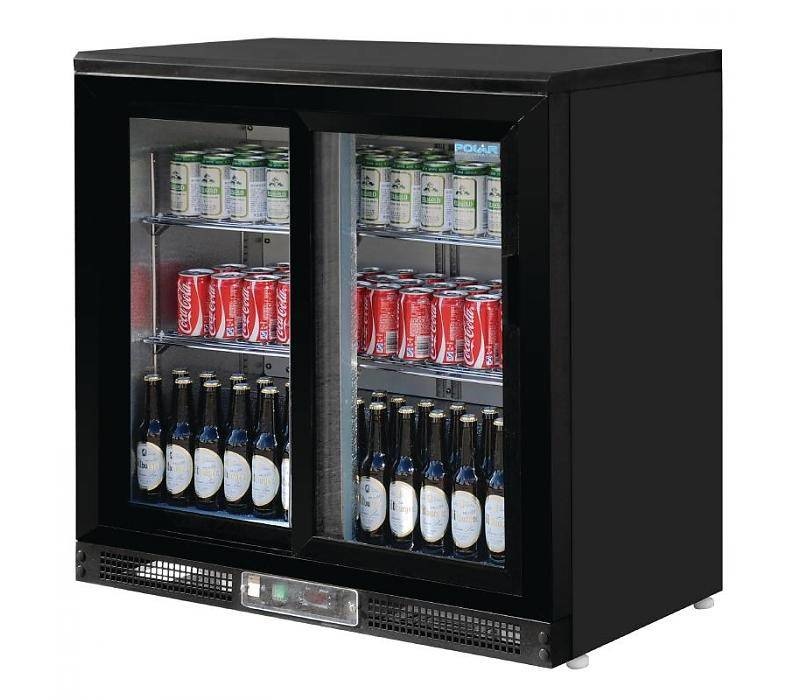 Gardez vos boissons fraîches et accessibles dans cet arrière-bar Polar. Extérieur en epoxy polyester noir, deux portes double vitrage verrouillables coulissantes.