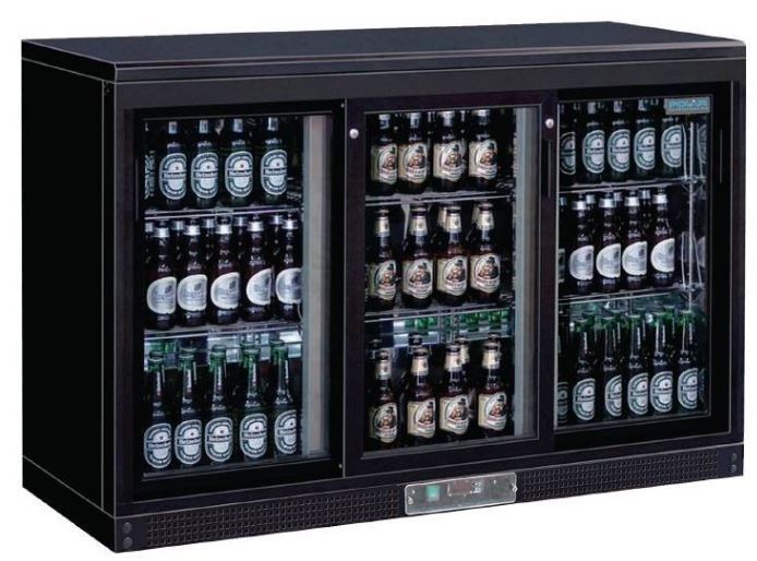Gardez vos boissons fraîches et accessibles dans cet arrière-bar Polar. Extérieur en epoxy polyester noir, trois portes double vitrage verrouillables coulissantes.