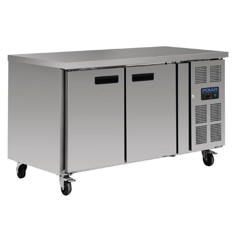 Comptoir Réfrigéré Inox + 2 Portes - Roulettes - 1360(L)x600(l)x850(h)mm