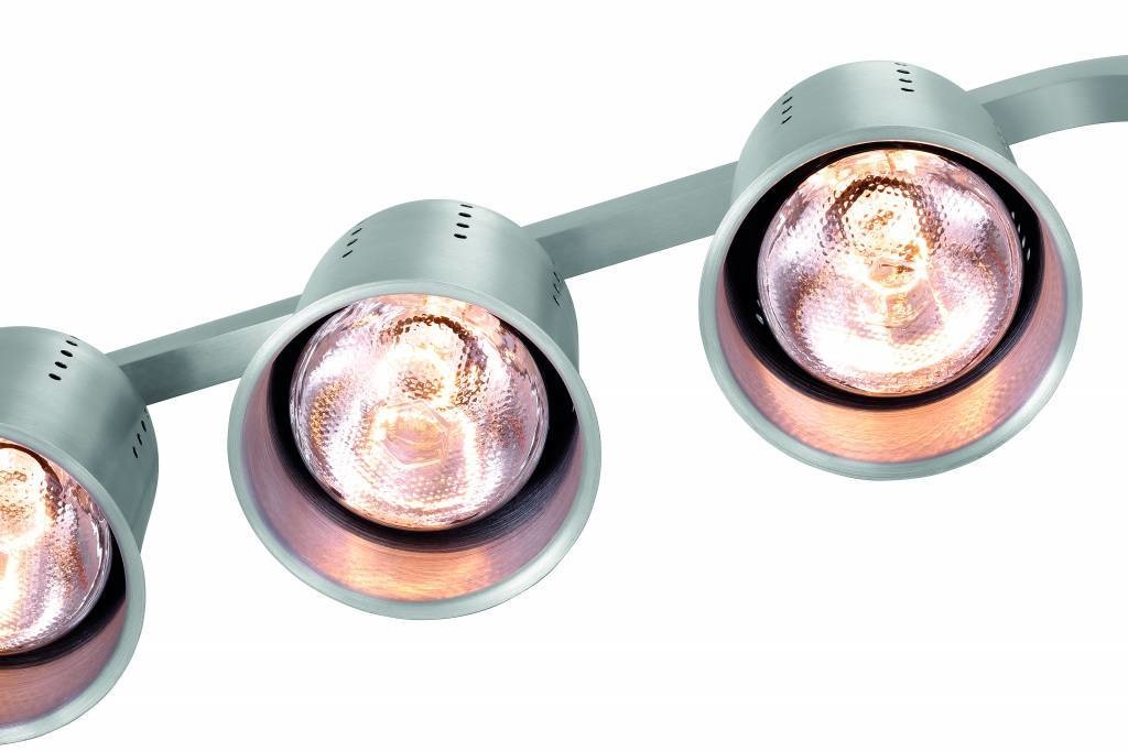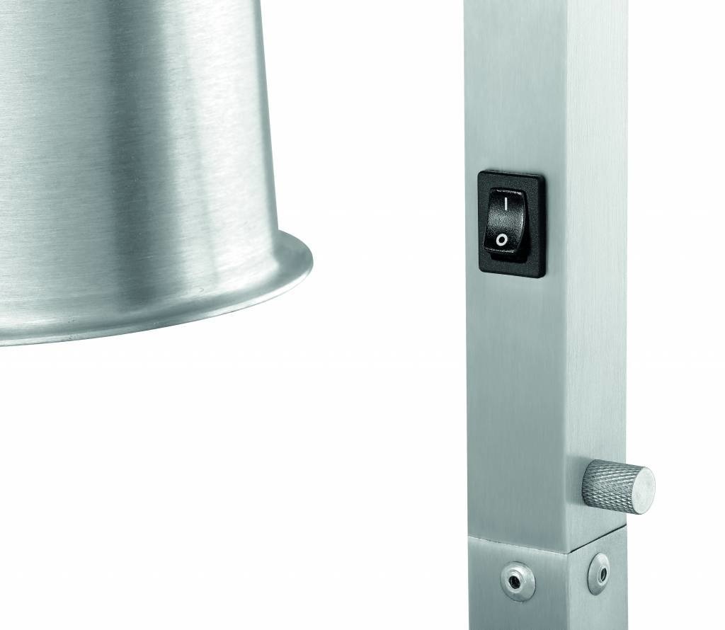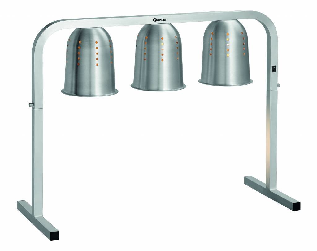 3 lampes chauffantes avec réflecteurs en aluminium ventilés assurent une chaleur ciblée. La surface peut accueillir des récipients jusqu'à GN 2/1 et convient donc parfaitement aux grands buffets, au catering ou aux cantines.