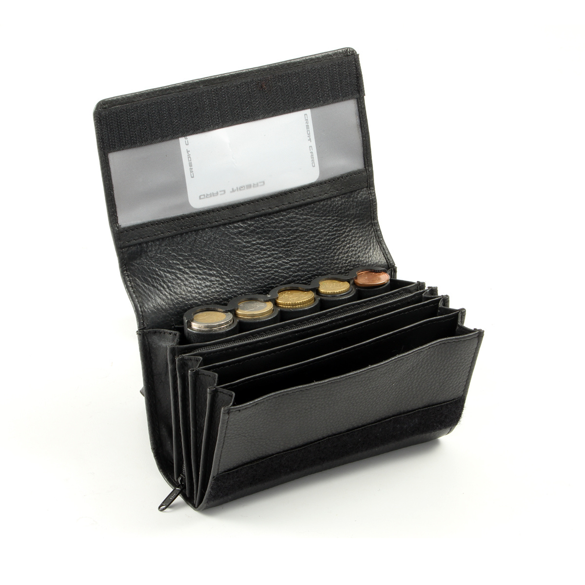 Portefeuille pour Restauration | Cuir | 4 Compartiments + Porte-Monnaie | avec Ceinture en Nylon | 170x115x35mm