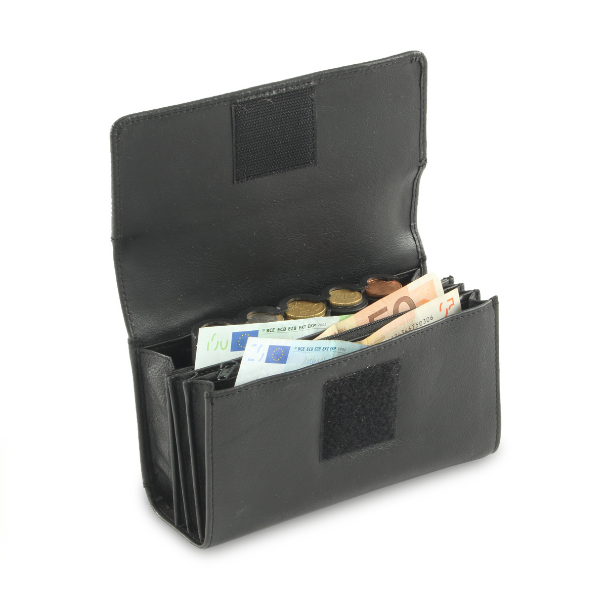 Portefeuille pour Restauration | Cuir | 5 Compartiments + Porte-Monnaie | avec Ceinture en Nylon | 190x120x30mm