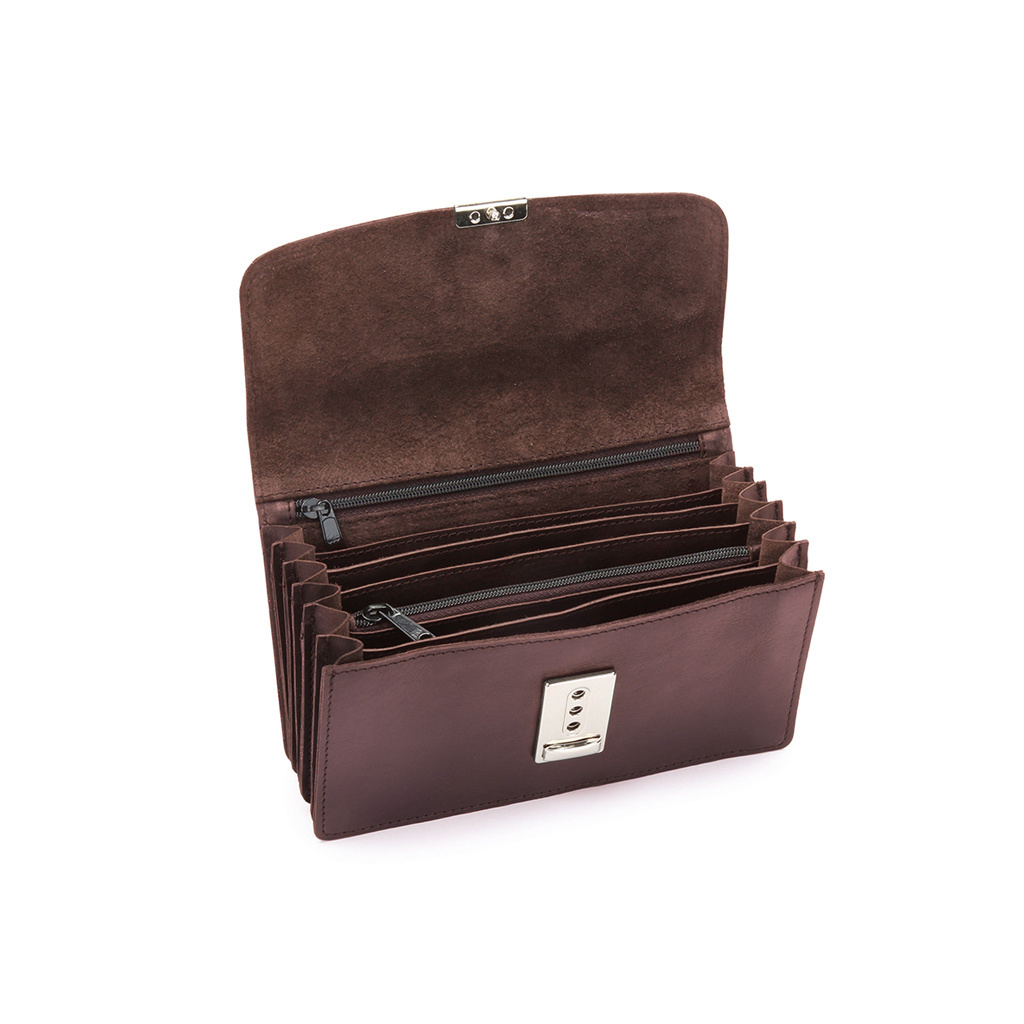 Portefeuille pour Restauration | Marron | Cuir | 6 Compartiments + Porte-Monnaie | avec Ceinture en Nylon | 180x30x100mm