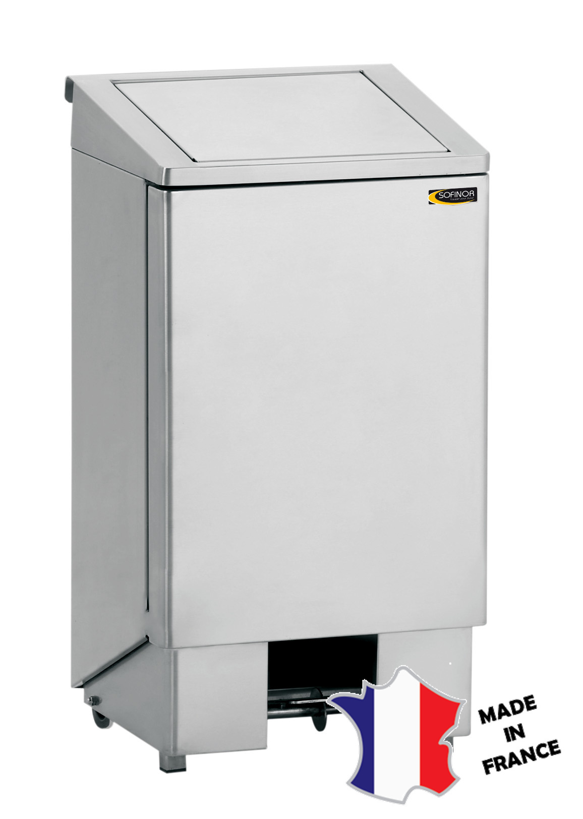 Poubelle | INOX | avec Porte et Capot à Pieds | 400(l)x370x770mm
