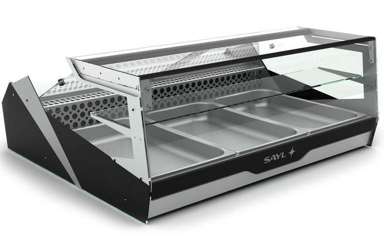 Cabinet solide et solide, idéal pour présenter des aliments frais, du poisson, des sushis, des salades et des desserts dans des établissements en acier inoxydable en libre service. Grâce à l'avant et à l'ouverture derrière le libre-service, la nourriture est facilement accessible.