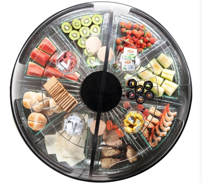 Présentoir Réfrigéré Rond | Convient pour 8 Plateaux de Buffet | Eclairage LED | 950x950x(H)750mm